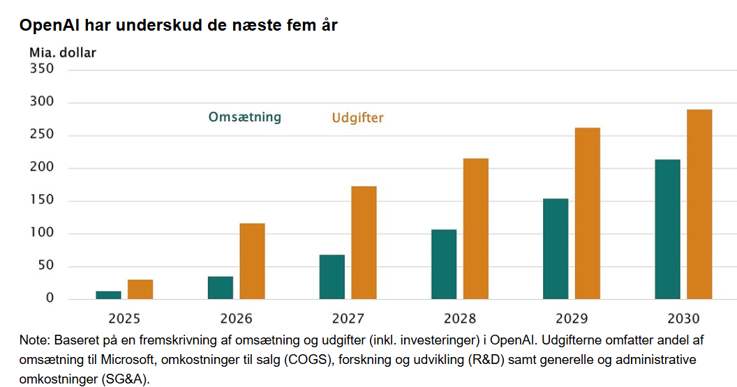 - Selv i det scenarie vil OpenAI fortsat have betydeligt underskud i 2030.