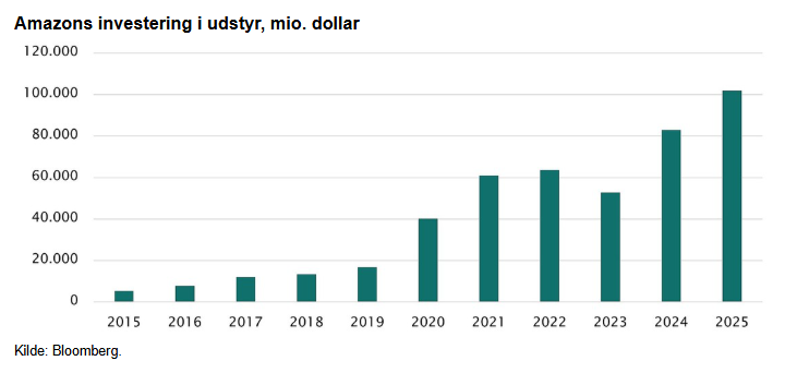 Udviklingen er resultatet af mange års store investeringer. Siden 2015 har Amazon investeret omkring 450 mia. dollar – svarende til mere end 100 Storebæltsbroer – blandt andet i at strømline logistikken.