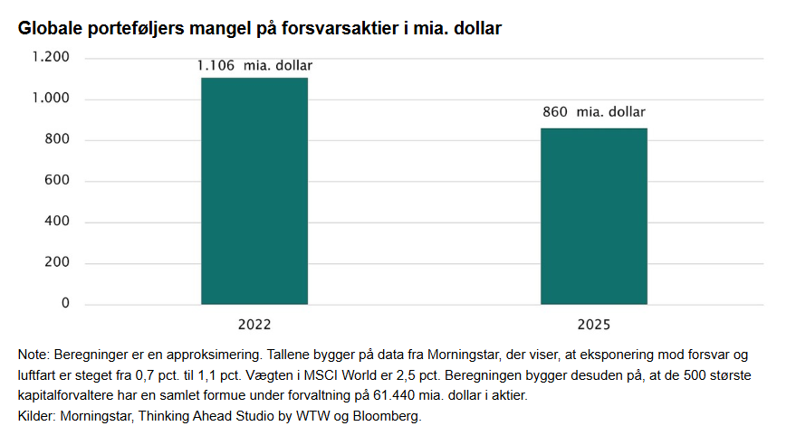 - Globale investorer har fortsat for få forsvarsaktier i deres porteføljer.