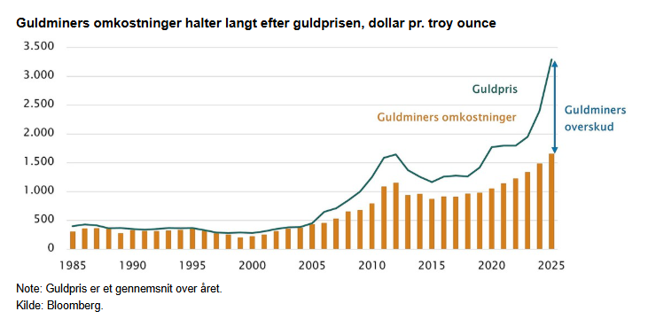 - Omkostningerne i guldmineselskaber er ikke steget i samme takt som guldprisen.