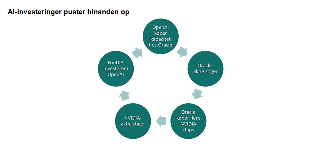 NVIDIA investerer 100 mia. dollar i OpenAI. OpenAI køber kapacitet hos Oracle. Oracles aktie stiger – og Oracle køber flere Nvidia-chips. Er det de samme penge, der flyttes rundt i et investeringscirkus?